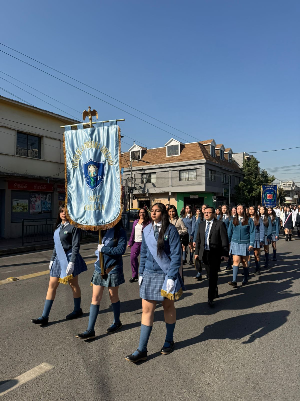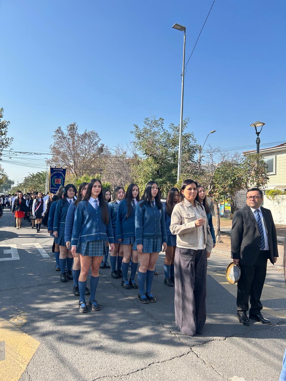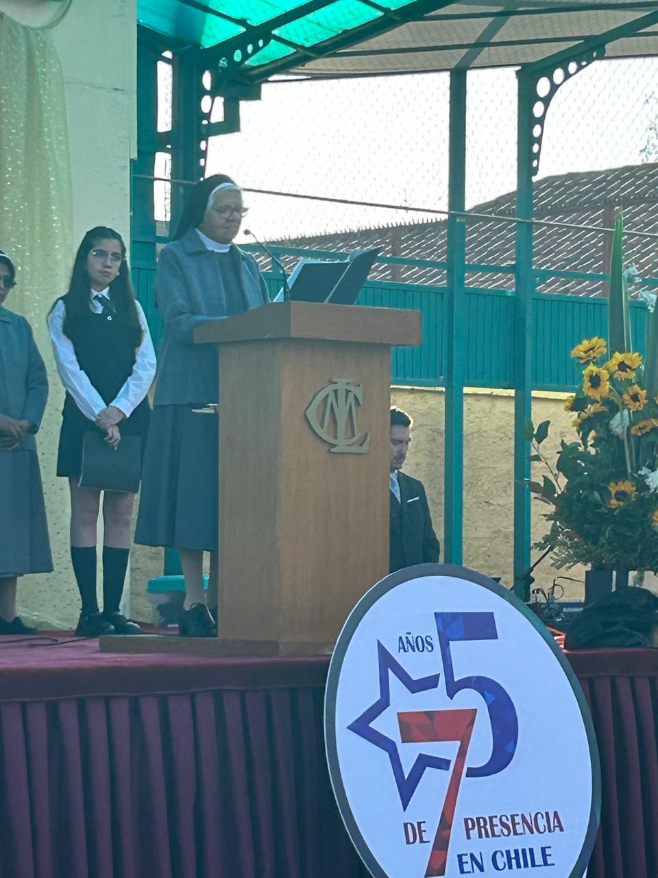 El viernes 24 de abril asistimos a la Celebración de los 75 años de presencia en Chile de nuestra Congregación de las Hermanas Franciscanas del Sagrado Corazón. Nuestra delegación de estudiantes y Directivos participó en el acto inaugural, desfile, Misa y almuerzo, reforzando la camaradería con nuestros Colegios Hermanos.